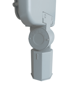 Material_ Aluminio Inyectado a presión, con terminación de pintura de poliester electroestáti-co en polvo al horno resistente a radiación UV y abración.