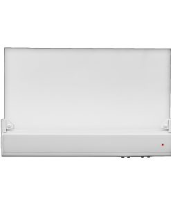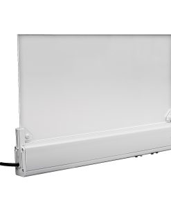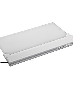 Cuerpo de aluminio para alojar los Led y equipo eléctrico, placa de acrílico transparente con letras de color verde.